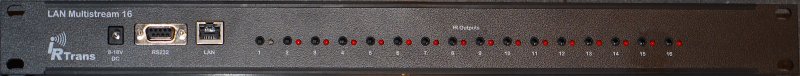 Der IRTrans Multistream 16 besteht im Prinzip aus 16 IRTrans Geräten, die über ein gemeinsames LAN Interface angesprochen werden.